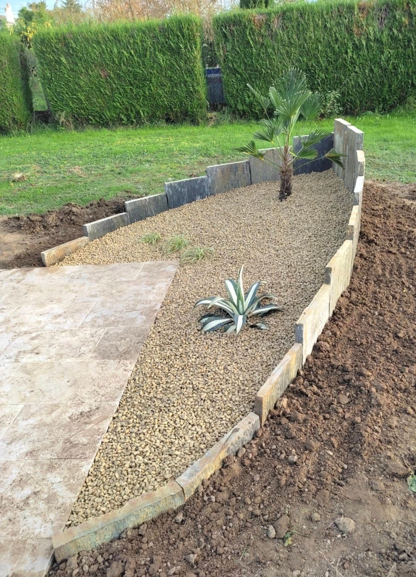 Embellissez vos espaces verts grâce à nos réalisations, en galet ou en béton reconstitué.